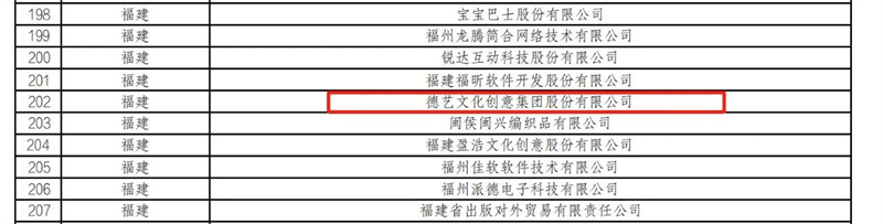 福州共有10家企业、1个项目入选,其中1家为晋安企业——德艺文化创意集团股份有限公司。
