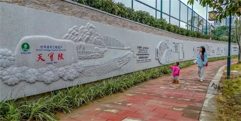 百米景墙分四大主题,以“十六字”治水思路为指导,讲述木兰陂、天宝陂和龙腰渠世界灌溉工程遗产及大禹、李冰父子、林则徐等代表性治水人物故事。