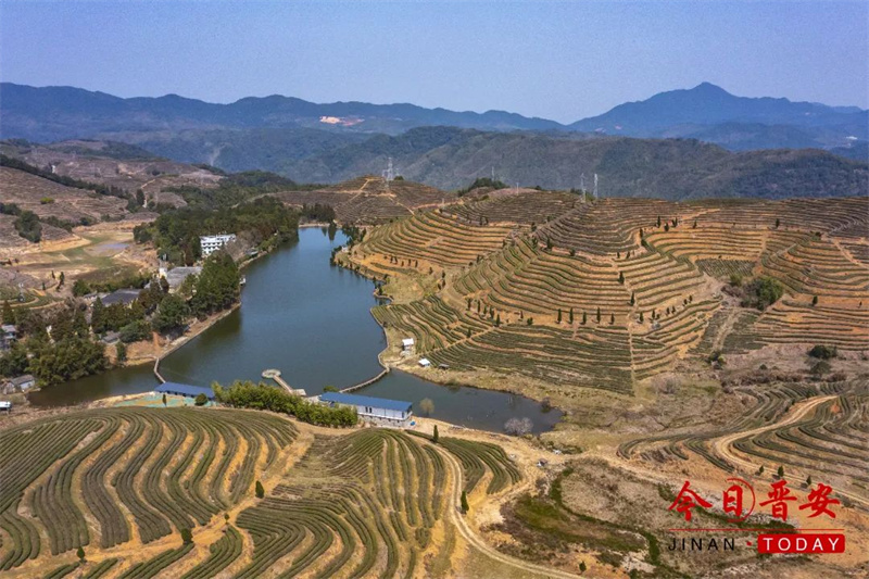 春雨一过,茶树抽芽吐绿。春风一吹,湖中茶山倒影愈加丰满。