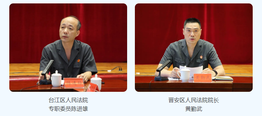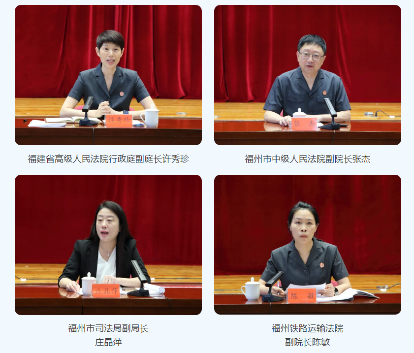福建省高级人民法院行政庭副庭长许秀珍、福州市中级人民法院副院长张杰、福州市司法局副局长庄晶萍、福州铁路运输法院副院长陈敏、台江区人民法院专职委员陈进雄、晋安区人民法院院长黄勤武参加会议。