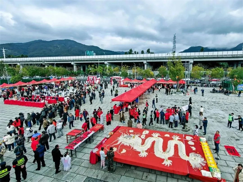 新店古城遗址公园“我们的节日·春节”专场活动拉开序幕,活动现场有古老的米龙祈福习俗:用1000斤左右的大米堆出一条巨大的“龙图腾”。除了米龙,现场设置多个活动专区,通过非遗展示西园软木画、同利肉燕,群众近距离感受非遗技艺的魅力。福文化体验区,春节民俗文艺展出,浓浓的年味让人沉浸其中!
