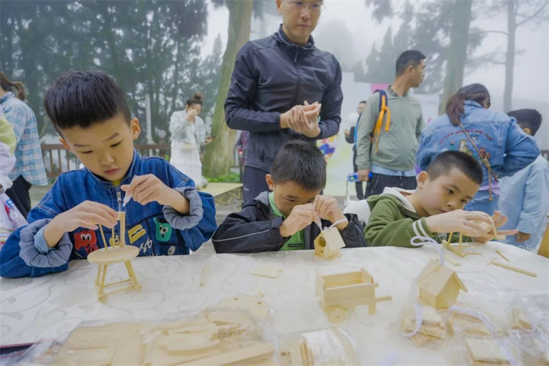 鼓岭五一假期推出了趣玩鼓岭 FUN肆“宜夏”主题活动,此次活动采用线上+线下结合的方式,在5月1日、2日主题活动日现场,主办方设置了以“快乐劳动”为主题元素的亲子DIY手工互动区,为五一假期前来鼓岭的中外游客,打造悠闲亲子手工互动乐园。游客在参与制作中感受劳动的快乐,感受假期的悠闲时光。
