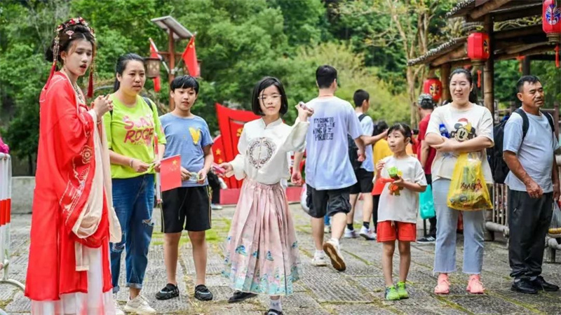 皇帝洞景区推出“踏青祈福 乘风而上——山林野趣寻畲韵,踏青祈福至寿山”活动,丰富的国潮文化展、投壶等传统项目,反哺现实,“破圈”掀起国风新潮流。
