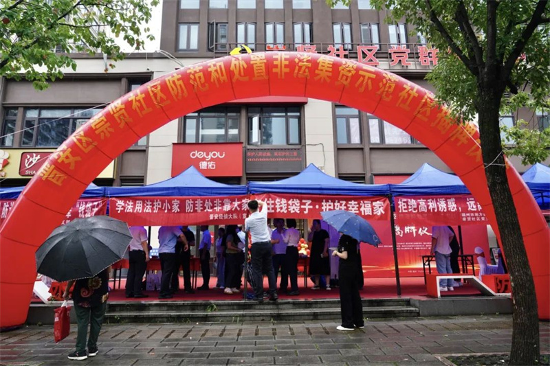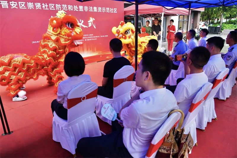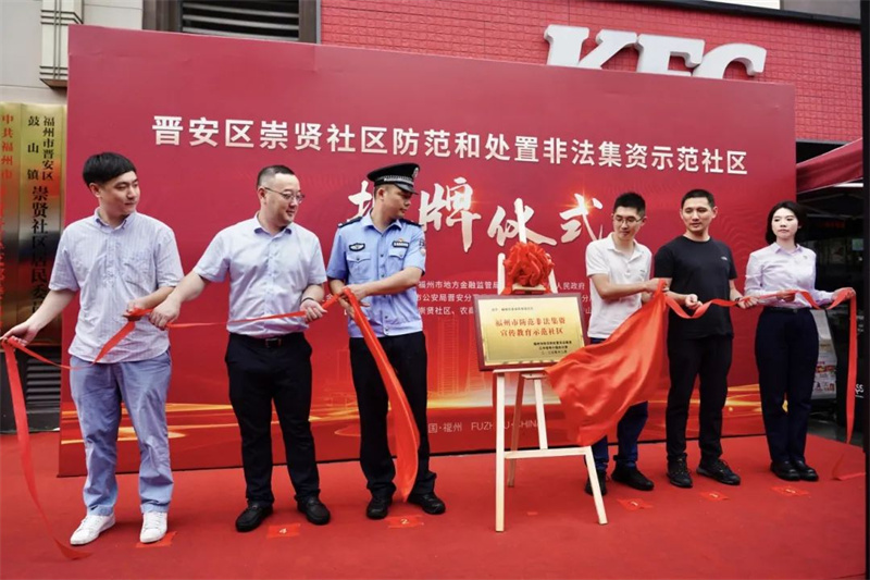为贯彻落实国家关于金融安全的工作要求,深入实施《防范和处置非法集资条例》,进一步增强群众对非法集资风险的防范意识能力,全国防范非法集资宣传月集中宣传日当天,晋安区在鼓山镇崇贤社区举办处非宣传示范社区揭牌仪式暨防范和处置非法集资宣传活动。