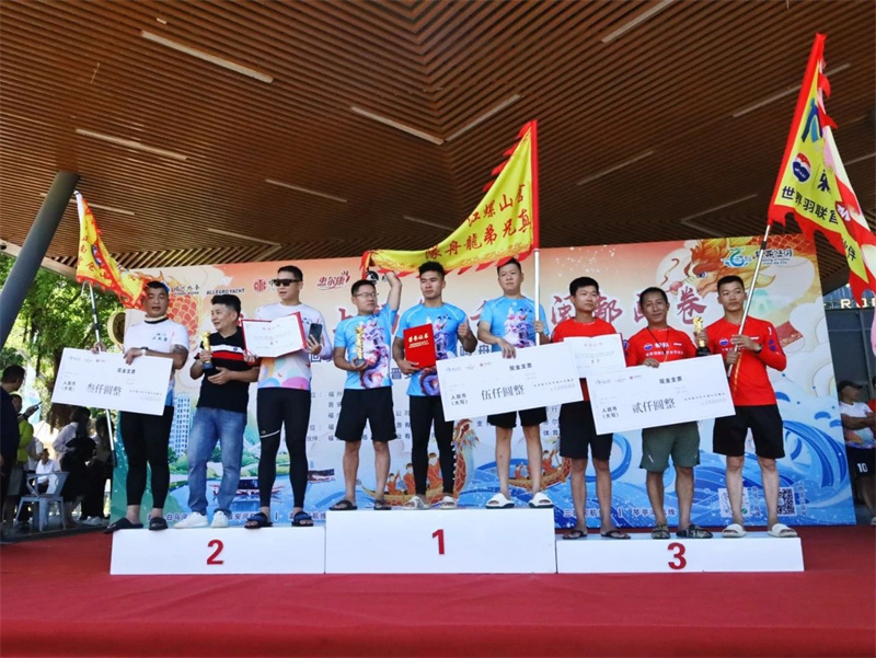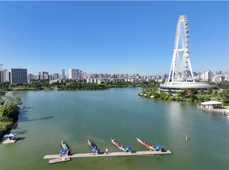 本站赛事还启动了趣味浓厚的龙舟集市,设置龙舟模型拼装区、柳叶桨绘画区、龙舟文化图片展、龙舟主题美食区、闽都非遗展示区等,为现场观众带来丰富的观赛体验。