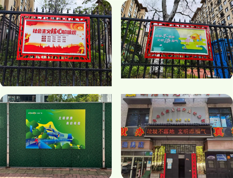 此外,在辖区的主次干道、公园、建筑工地等重要场所新增公益广告35处,并及时更换破损、过时的公益广告42余处,更有效地发挥公益广告传播正能量、弘扬社会主义核心价值观的重要功能。