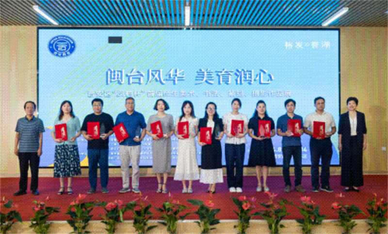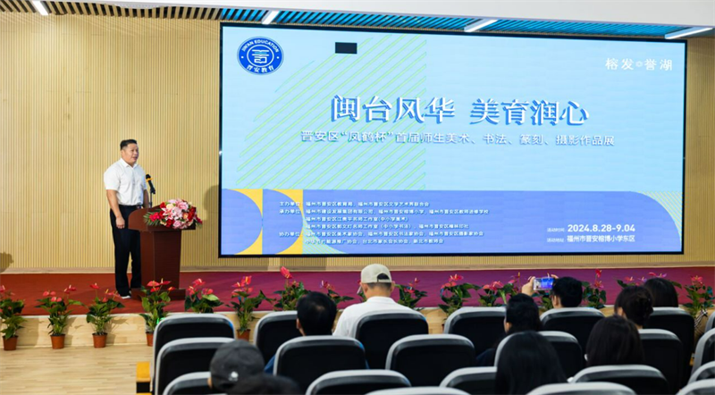 为进一步弘扬中华传统文化,展示闽都文化,促进闽台文化交流融合,推动晋安区各中小学美育发展,8月28日上午,由晋安区教育局、晋安区文学艺术界联合会主办的“闽台风华·美育润心”晋安区“凤鹤杯”首届师生美术、书法、篆刻、摄影作品展览活动在福州市晋安榕博小学(东区)开幕。