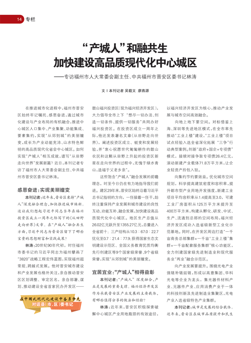 ——专访福州市人大常委会副主任、中共福州市晋安区委书记林涛
