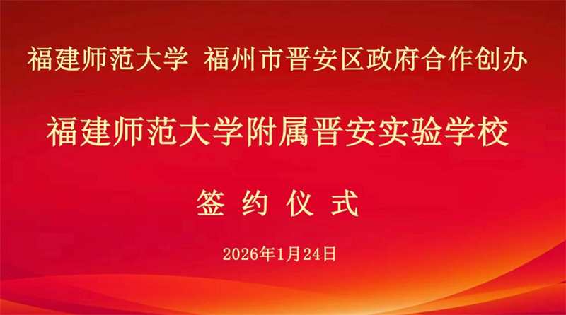 1月24日,晋安区与福建师范大学举行签约仪式,合作创办福建师范大学附属晋安实验学校(九年一贯制)。福建师范大学校长郑家建,福建师范大学党委副书记陈晓红,福州市人大常委会副主任、晋安区委书记林涛,福州市教育局局长游昕,晋安区委副书记、区长夏星,以及福州城投集团董事长黄志强等学校建设单位特邀代表出席活动,共同见证晋安基础教育高质量发展的又一重要时刻。