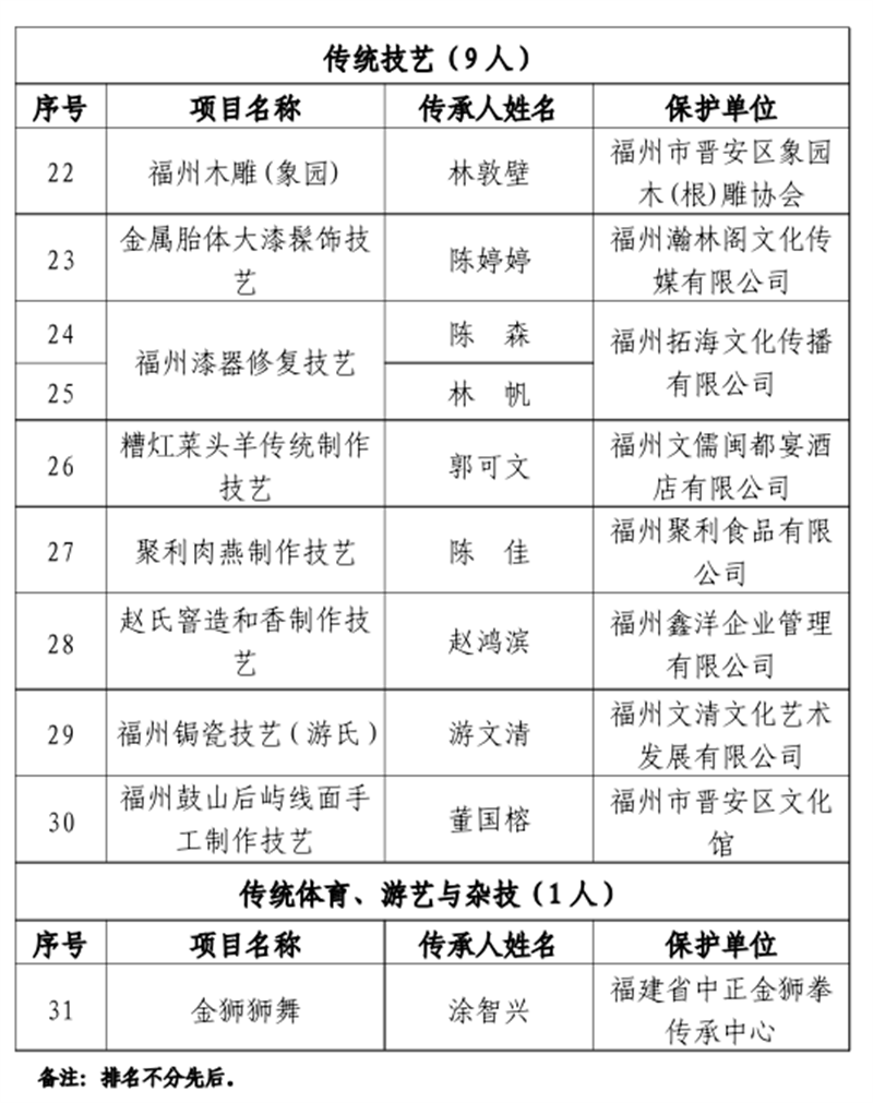 名单公布!晋安新增31名区级非遗传承人
