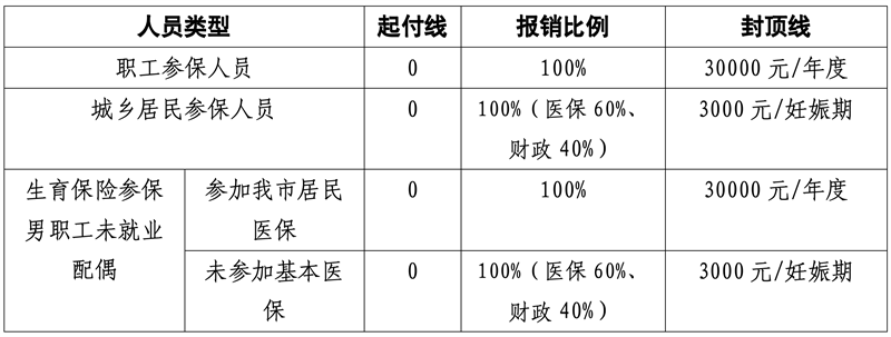 备注:在非我市定点医疗机构或市外医疗机构住院分娩的,仍按基本医保住院待遇执行。