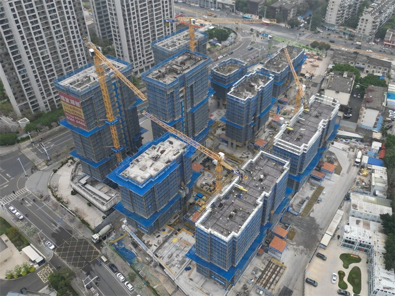 项目已进入全面封顶关键阶段,展示区施工任务正加紧推进,各项细节专项提升工程同步高效落地。项目共建设有14栋17F-33F住宅楼,提供商品房1106套,其中生态住宅488套;同时配建约5040㎡幼儿园及约3011㎡商业建筑,建成后将进一步完善区域人居配套。