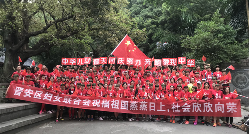 “中华儿女、普天同庆、努力奔跑、爱我中华!”9月28日上午,在国家级风景名胜区鼓山脚下,由晋安区妇联、“惠容·妇女微家”联合开展的一场别开声面的“巾帼心向党 礼赞新中国”主题活动闪亮登场,为景区增添了又一道靓丽的色彩。活动吸引十余个行业的妇女及众多家庭积极参与,大家齐声歌唱祖国,开展奔跑快闪活动,献礼新中国成立70周年。