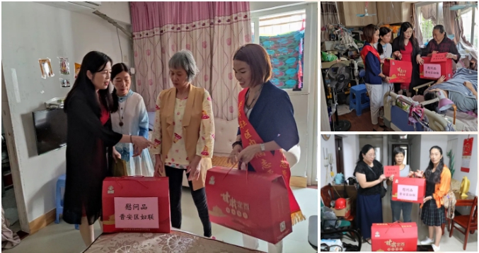 两节期间,晋安区妇联携女企业家、基层妇联干部走访慰问辖区贫困妇女64名,送去慰问金5.55万元及棉被、食用油、年糕等慰问品;慰问扶贫结对子的闽清县上莲乡新村村10名困难群众,送去0.5万元慰问金;“六一”儿童节期间,向捷坂小学及两所幼儿园送去疫情防控消毒物资、学习用品等慰问品1.55万元。