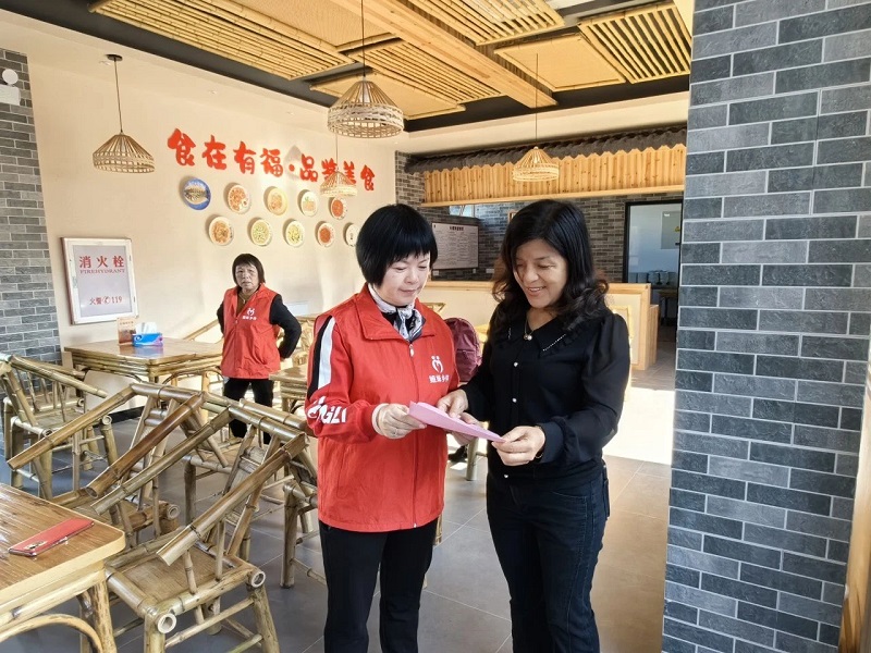 巾帼志愿者向村民们派发宣传手册,讲解生活垃圾的分类类别、投放方式以及有害垃圾的处理方法,面对面指导村民对生活垃圾进行分类,鼓励大家从自身做起,培养垃圾分类的好习惯。