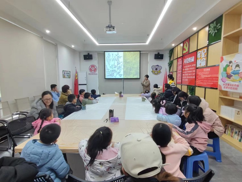 阅读活动结束后,故事妈妈还展示了一株来自青蒿之都酉阳县的青蒿苗,并向孩子们介绍了这种植物在古书中的记载。孩子们惊喜地发现早在快两千年前,中国的古人早已认识了这种草药,并用于药物治疗中。孩子们仔细观察青蒿的形状,细嗅它的气味,并用肌理画的形式将它绘制出来。
