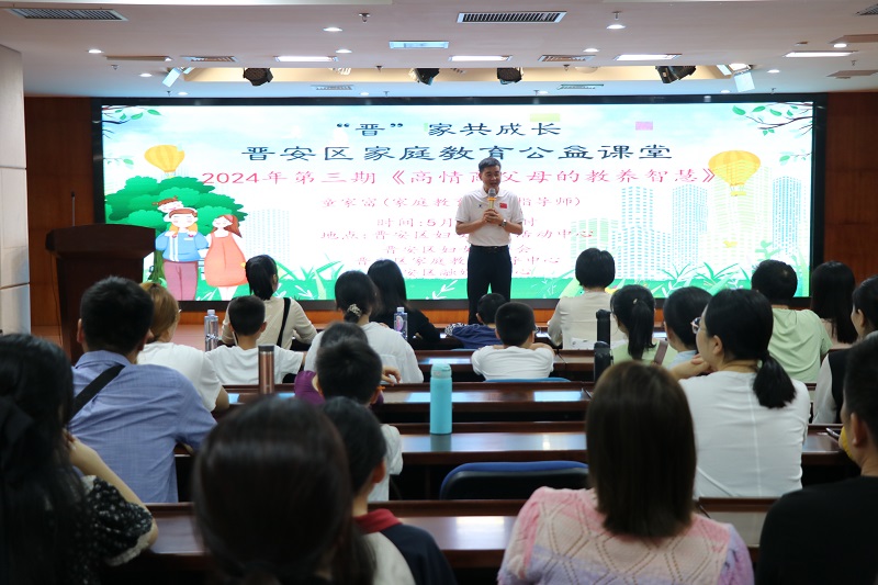 5月25日下午,“晋”家共成长——2024年晋安区家庭教育公益课堂第三期讲座在区妇女儿童活动中心顺利开展,福建省家庭教育讲师团讲师、福州市象园教育集团党总支副书记、家庭教育高级指导师童家富为30多名学生家长带来“高情商父母的教养智慧”主题讲座。