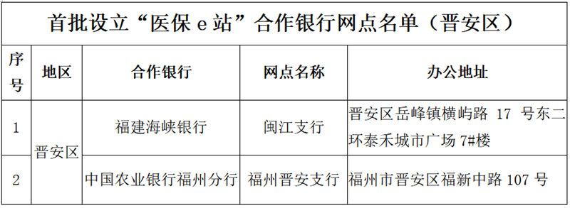 近日,福州市医保部门与中国农业银行福州分行、福建省农村信用社联合社福州办事处、福建海峡银行签约,在全市32家银行网点设立“医保e站”。自此,市民可以在家门口的银行网点办理有关医保业务。