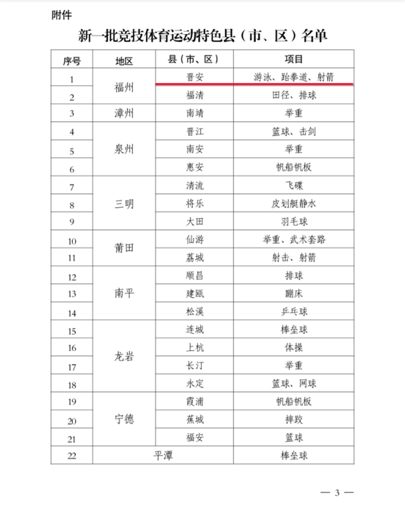竞技体育运动特色县(市、区)共建名单