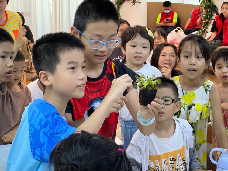 整堂课在精彩的互动中进行,除了一些植物标本外,老师还特别携带了十余盆鲜活植物给学员们进行展示,让学员们肉眼观察到猪笼草、食虫花等植物实体。