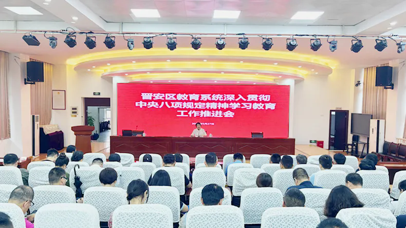 会议强调,全区教育系统要深刻领会和贯彻落实习近平总书记重要讲话精神,增强政治自觉,突出务实导向,压实工作责任,确保深入贯彻中央八项规定精神学习教育取得扎实成效。要紧盯当前中小学校园食品安全和膳食经费管理集中整治和利用征订教辅、购买校服谋利等问题,扎紧制度“笼子”,规范权力运行。要密切结合区中小学党建“堡垒领航、书记领办”行动,以“双领”项目推动党建工作与学校中心工作同频共振、同步攻坚。要持续推动作风建设,以严标准检身正己,强化统筹谋划,将学习教育与教育强区建设等重点工作紧密结合,以实际行动推动晋安教育高质量发展。