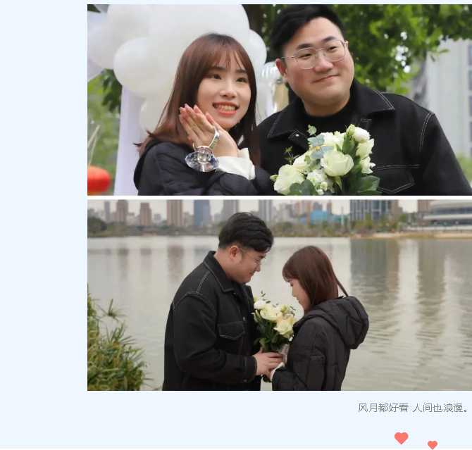 随后,新人们打卡福州人才公园,在精心布置的浪漫氛围中定格珍贵的幸福瞬间。人才服务专员为他们送上手捧花和热烈祝福。