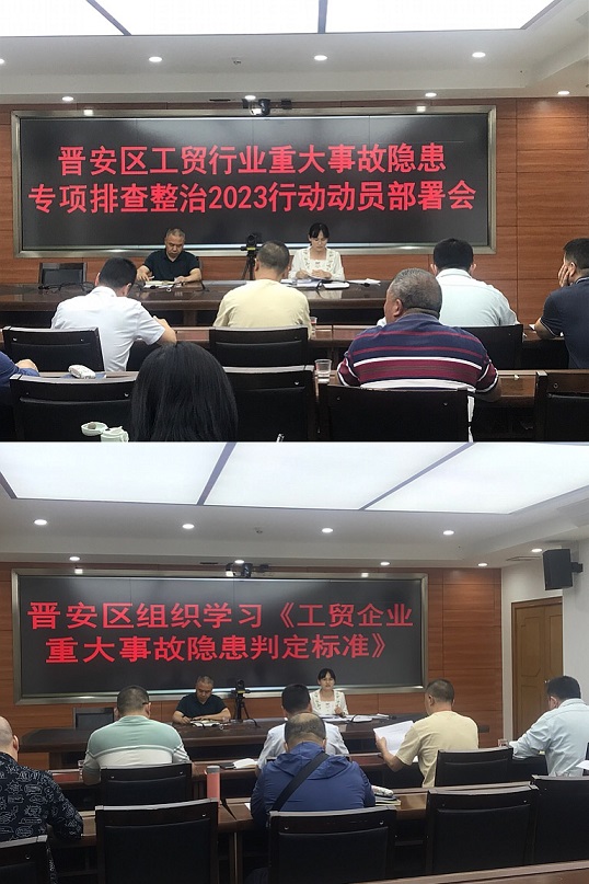 为推动我区工贸行业重大事故隐患专项排查整治工作落实到位,5月24日下午,在晋安区委4层防汛会议室召开晋安区工贸行业重大事故隐患专项排查整治2023行动动员部署会,并组织集中学习《工贸企业重大事故隐患判定标准》(应急部令第10号)。区应急管理局综合监管科全体工作人员,各乡镇(街道)、福兴经济开发区、金城产业发展与古城保护中心安办主任参会。