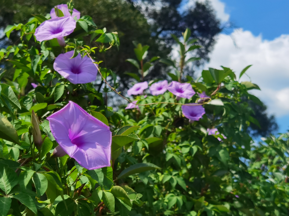 牵牛花等美丽的花朵正在盛放