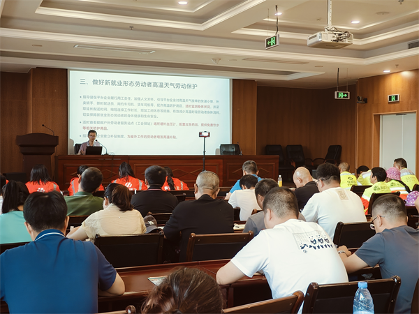 培训班邀请了三位专家老师进行授课,福州市第二总医院的王文豪心理治疗师为劳动者讲解高温作业人员心理健康。紧接着,福州市疾病预防控制中心的刘佩芳老师采用问答结合的互动形式,向现场劳动者普及宣传职业健康素养知识,激发了劳动者们的学习兴趣和参与热情。最后,福州市疾病预防控制中心职卫科 科长、主任医师沈波凭借丰富的专业知识和多年的实践经验,全面系统地介绍了高温环境对人体的健康影响,职业性中暑的诊断、预防和处置等,让劳动者们对职业病有了更为清晰、全面的认识,为他们在日常工作中做好自我防护提供了科学依据。