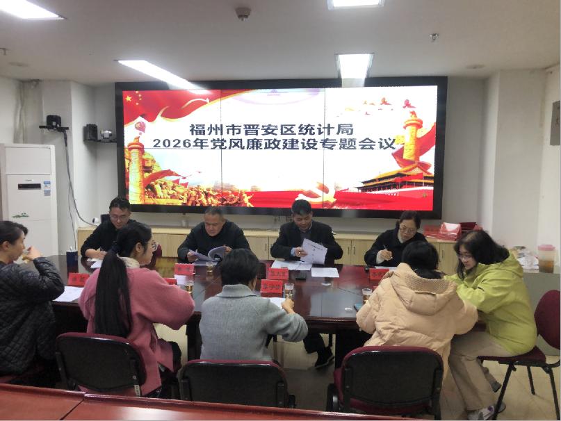 2026年2月3日下午,晋安区统计局召开2026年度党风廉政建设大会,区统计局、区城调队、区农调队、区普查中心全体党员、驻区发改局纪检监察组组长林峰参加会议。