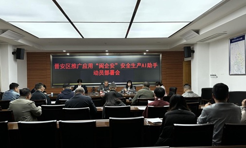 近日,晋安区安办组织召开推广应用“闽企安”安全生产AI助手动员部署会,区应急管理局、区工信局、区商务局、各乡镇(街道)、福兴经济开发区管委会、金城产业发展与古城保护中心、中国电信福州晋安分公司相关负责人参加。
