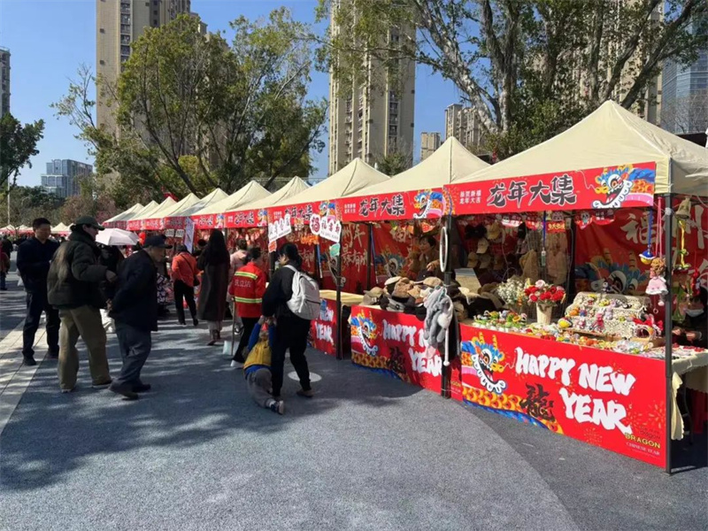 晋安湖公园在春节期间开设新年集市,冰糖葫芦、烤肠烤串,各种美食小吃以及游戏互动,让人梦回儿时过年逛庙会的经历。
