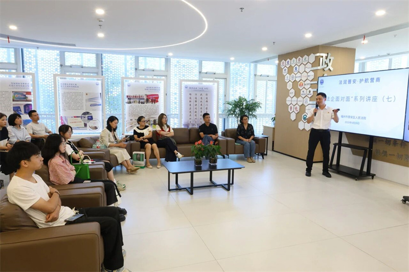 推出一支法律专员服务队伍。创新推行法律专员制度,以园区十大网格为基础,建立网格企业“一对一”联络服务机制。将每月第二个星期五确定为“法律专员服务日”,深入走访园区企业20家,提供法律建议50余条,帮助解决问题30余项。推行一系列“法企面对面”主题活动。依托福州市首个区级“营商会客厅”平台,推出“法企面对面”系列讲座,每月开展主题法律宣讲,2025年以来共开展讲座8场次,覆盖企业140余家。结合“福州企业家日”“惠企安商司法服务周”等节点,开展庭审观摩、主题座谈等活动16场,持续加强和改进法治化营商环境工作。推广一批涉企司法服务成果。针对园区常涉纠纷领域,连续3年发布《商事审判白皮书》《融入基层治理白皮书》《劳动争议审判白皮书》,梳理风险提示13条、典型案例30个,助力园区企业更加规范高效经营。针对园区某类纠纷数量激增问题,点对点制发《风险防控提示函》,促推企业做好事前预防和实质化解。