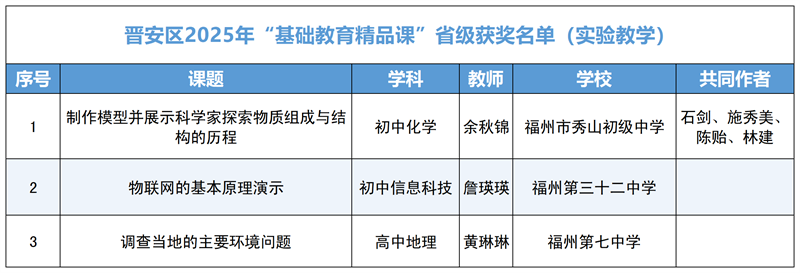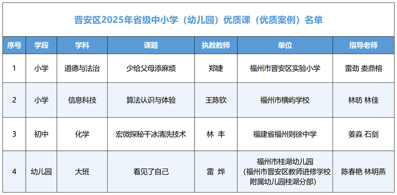 近日,福建省教育厅公布2025年省级“基础教育精品课”评选结果。晋安区选送课例获奖总数再次登顶全市第一,实现精品课省级评选六连冠。