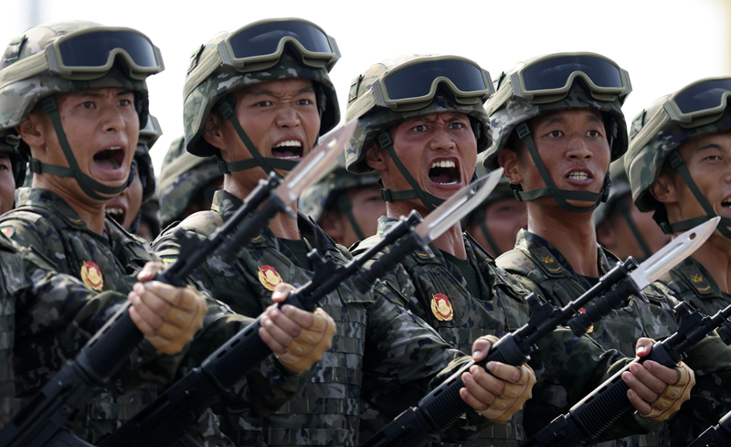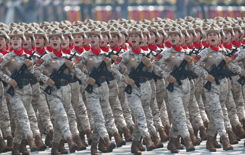 “听党指挥!能打胜仗!作风优良!”“正义必胜!和平必胜!人民必胜!”习近平主席乘车返回途中,受阅官兵齐声高呼。