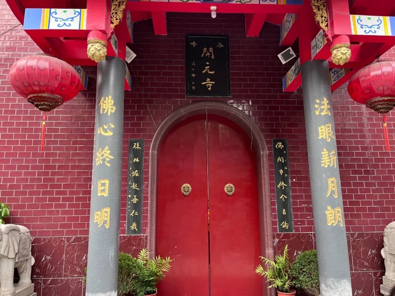 经三次改建重修,为双层混凝土结构建筑。寺大门上方悬挂着“茶峰开元古迹”六个大字,门的两旁有一副楹联:“开云揽月诸心静;圆海除尘万橹轻。”一层大厅亦有联:“红叶流云招鹤舞;晚霞映水伴龙吟。”二层佛龛内供奉三尊神祇,左座汉寿亭侯关圣帝君,中坐明朝左宰相徐达,右坐东丞主宰华光大帝。龛旁有联:“读春秋义参天地;开国纪德佐华光。”