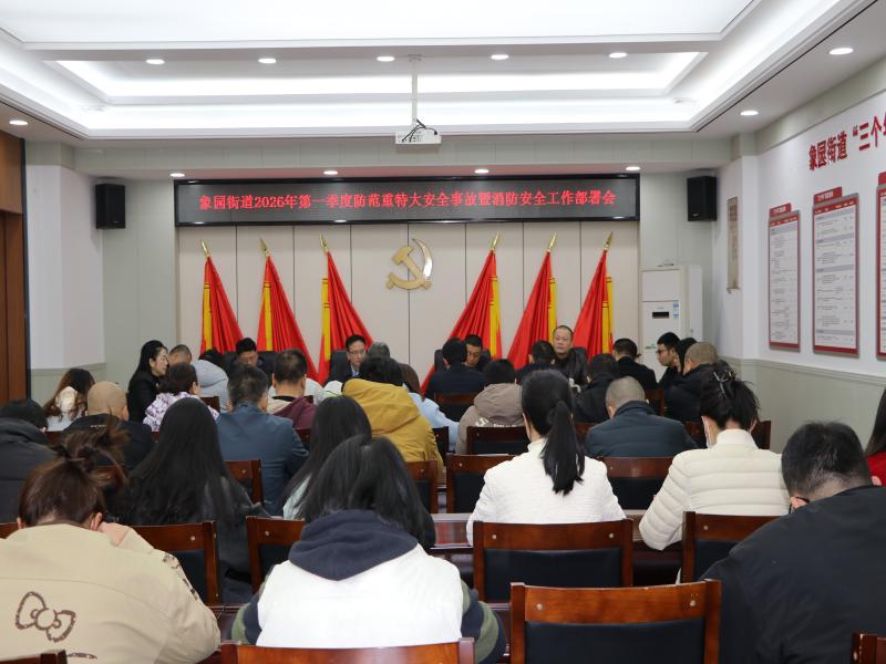 1月17日上午,象园街道党工委书记王海松主持召开2026年第一季度防范重特大安全事故暨消防安全工作部署会,街道班子成员、部门负责人及各社区书记参会。会议传达晋安区一季度安全生产工作会议精神,强调要提高政治站位、压实安全责任,聚焦各社区、部门突出安全风险隐患,以问题为导向,筑牢安全防线。会议要求,要紧盯老旧小区、餐饮场所、在建工地等薄弱环节,开展拉网式隐患排查,建立闭环整改机制;强化联合执法,协同安办、城建办、市监、教育等部门,严查燃气违规使用、无证校外培训机构等突出问题;深化宣传教育,通过LED屏、宣传栏等方式普及消防逃生、用电用气安全知识,重点提升校外培训机构等重点场所人员安全意识,确保岁末年初安全形势稳定。
