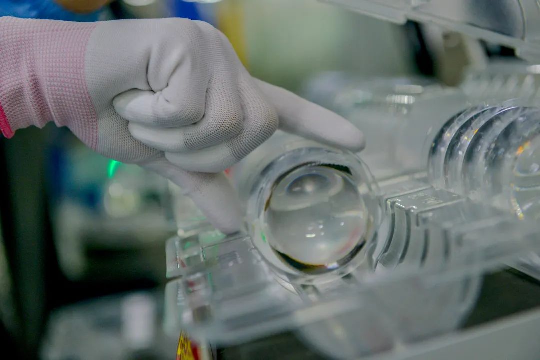 切割、组装、调试……高意集团5G光传输产品生产车间里,工人们在生产如发丝般精细的精密光纤电子元器件。