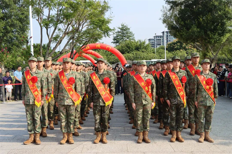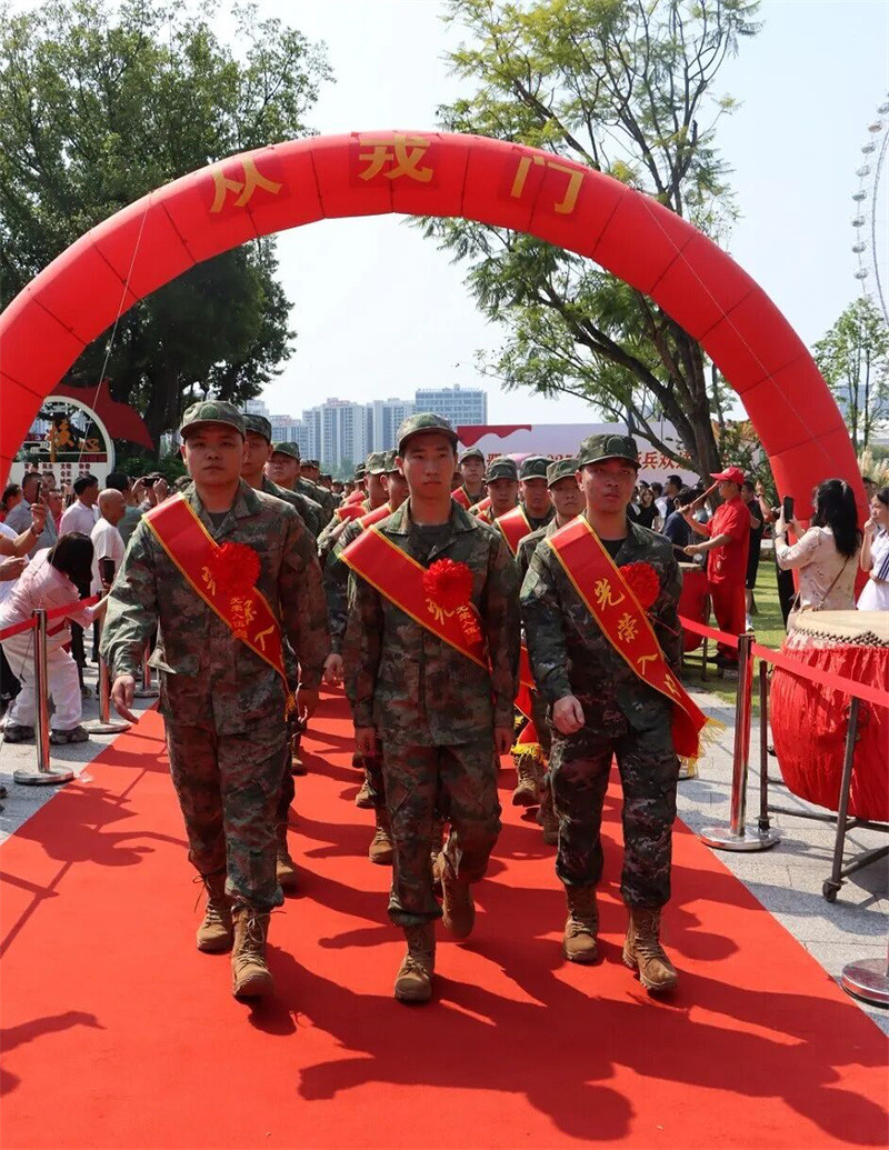 9月14日上午,区政府联合区人武部在晋安湖公园举办2025年秋季新兵欢送大会。即将踏上军旅征程的青年们身着迷彩、身披绶带,胸前戴着大红花,身姿挺拔如松,眼神中闪烁着对未来的憧憬与对家国的赤诚。