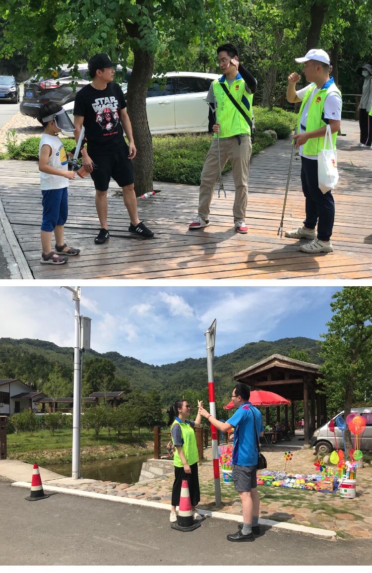 青年志愿者们用自己的“火眼金睛”细致地保洁九峰村景区的环境卫生。
