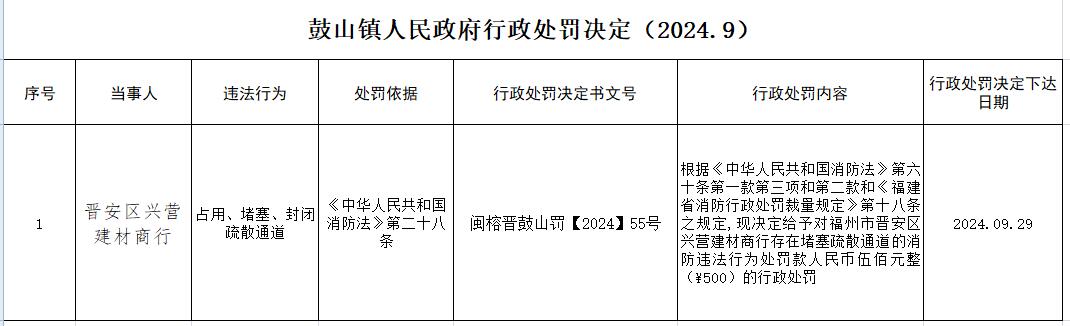鼓山镇人民政府行政处罚决定(2024.9)